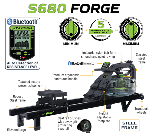 Dynamic Fluid FitnessPower Up Your Rowing Performance with the Dynamic Fluid Fitness S660 Forge Rower When results matter, the Dynamic Fluid Fitness S660 Forge Rower de...